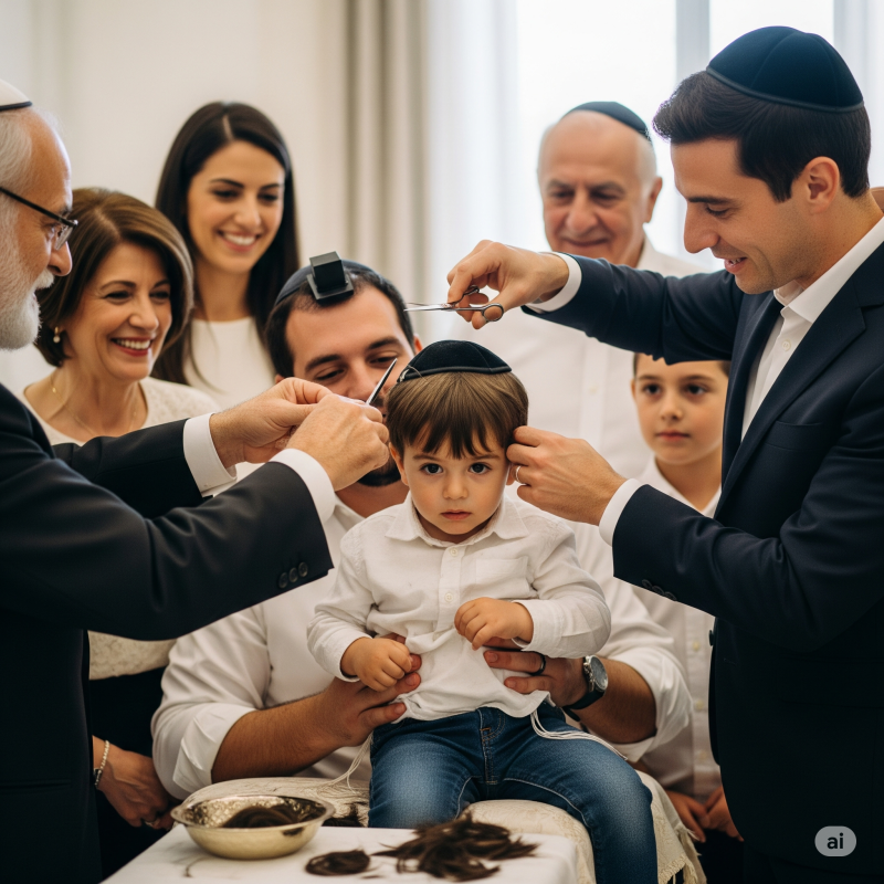 חלוקת מספריים: כל אורח גוזז קווצה, מברך את הילד.
